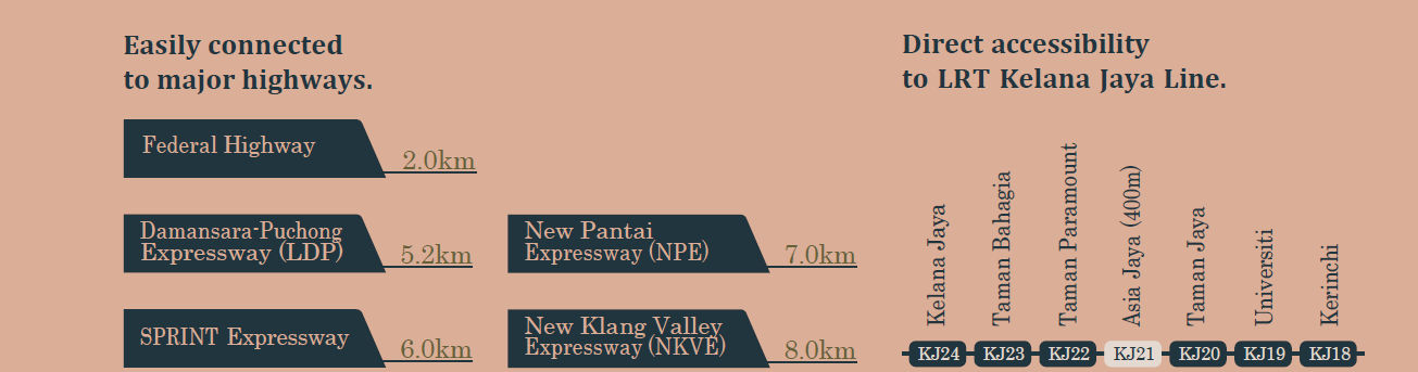 As a new transit-oriented development that will rejuvenate the matured neighbourhood of Section 14, PJ, This Project brings a fuss-free commute to residents via the Asia Jaya LRT that is within walking distance.